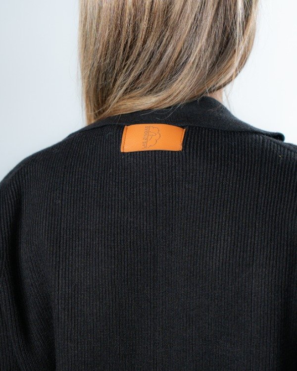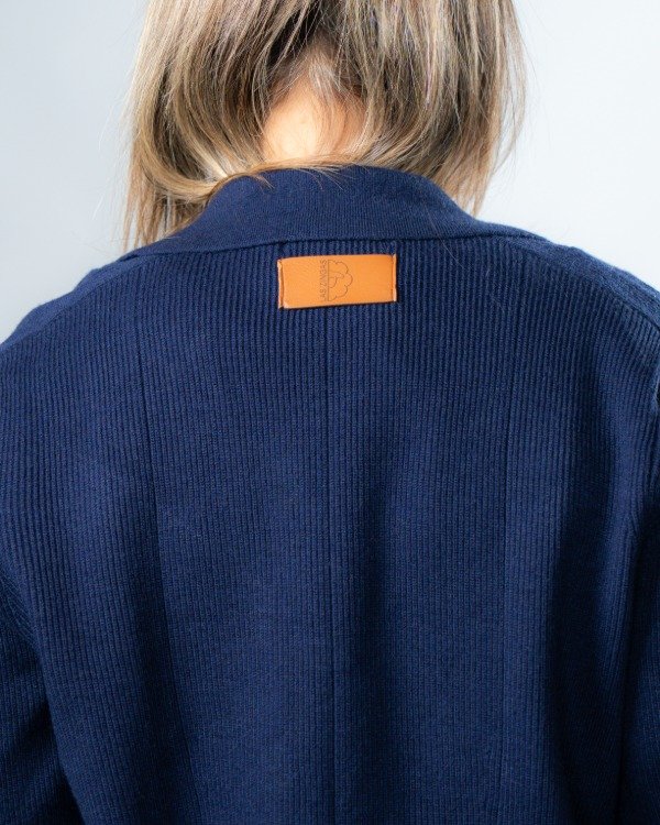 Cuenta con dos botones frontales que permiten usarlo cerrado o abierto según el estilo que quieras lograr. Las solapas laterales simulan bolsillos, aportando un detalle sutil de diseño.