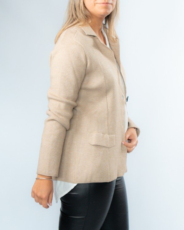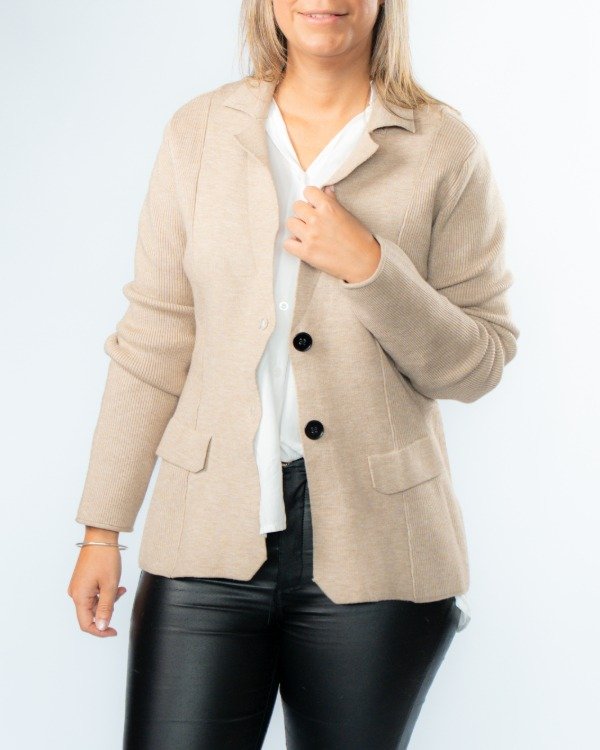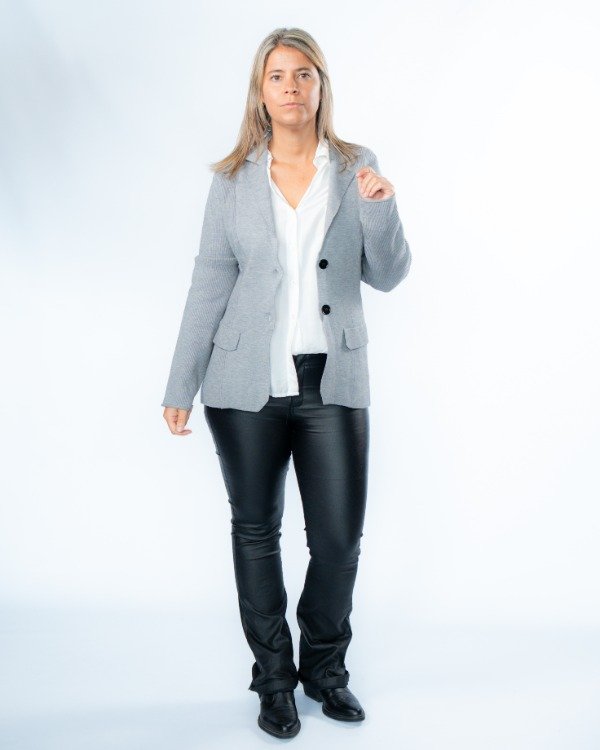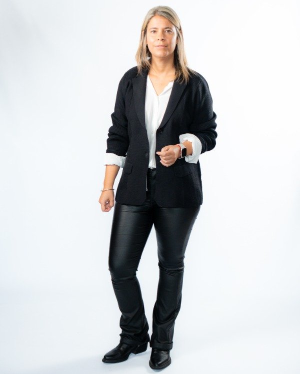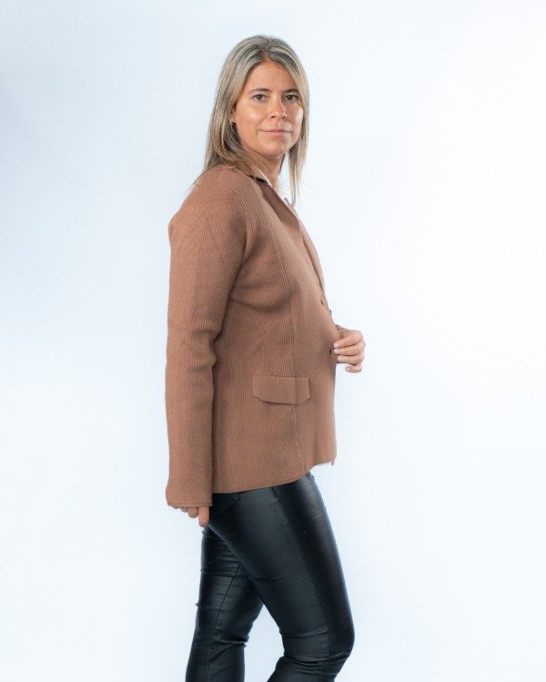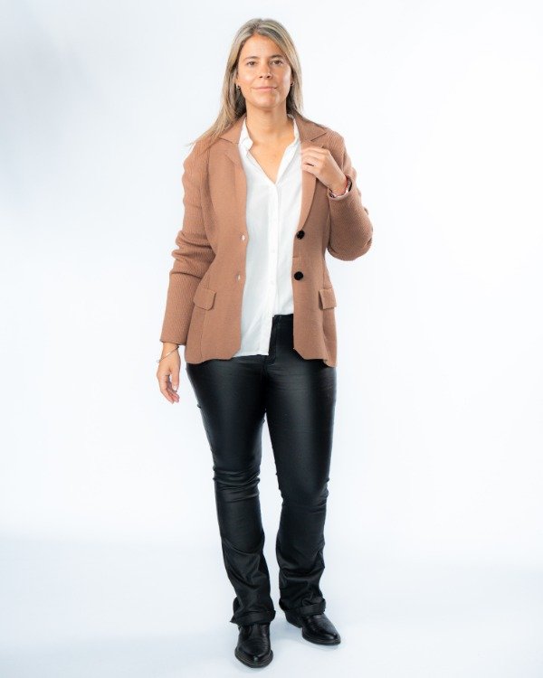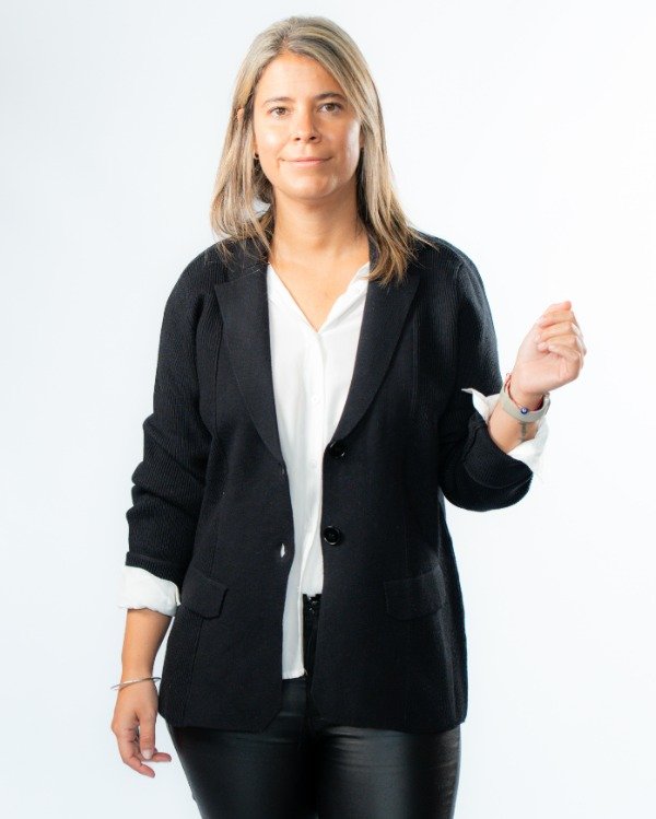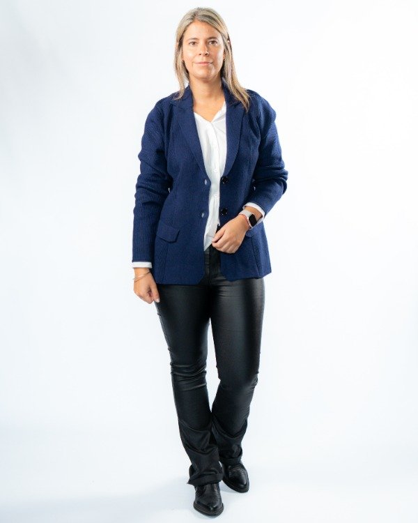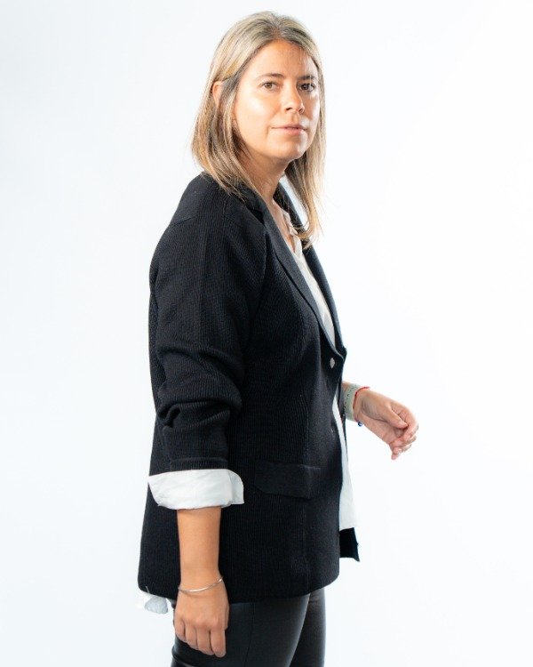 Un saco que combina estructura y detalle en cada terminación. Su diseño entallado al cuerpo realza la silueta, logrando un look elegante pero actual.