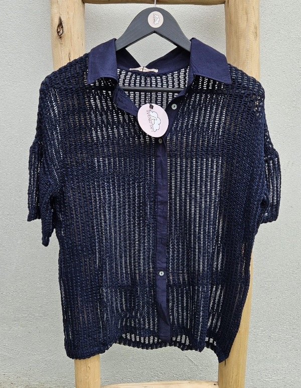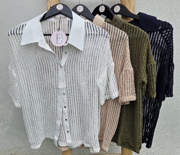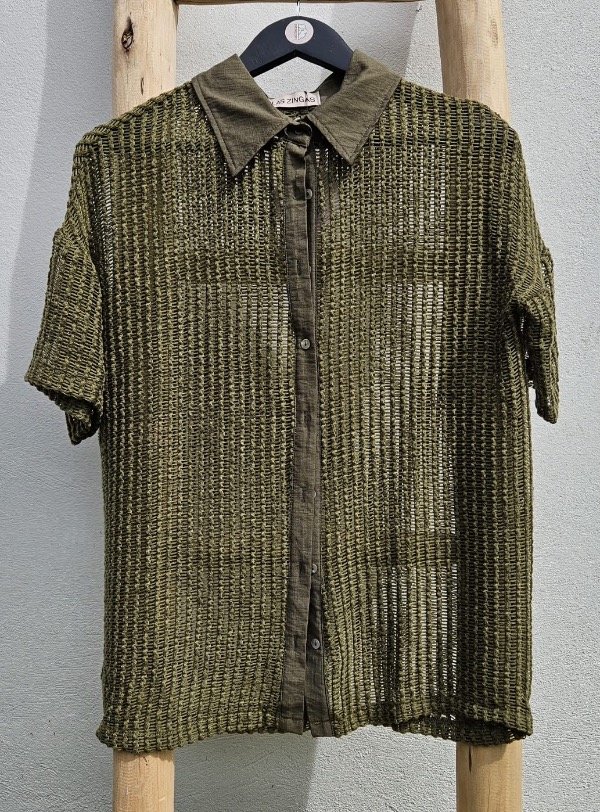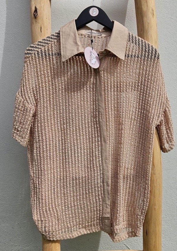 Camisa calada con botones y cuello.