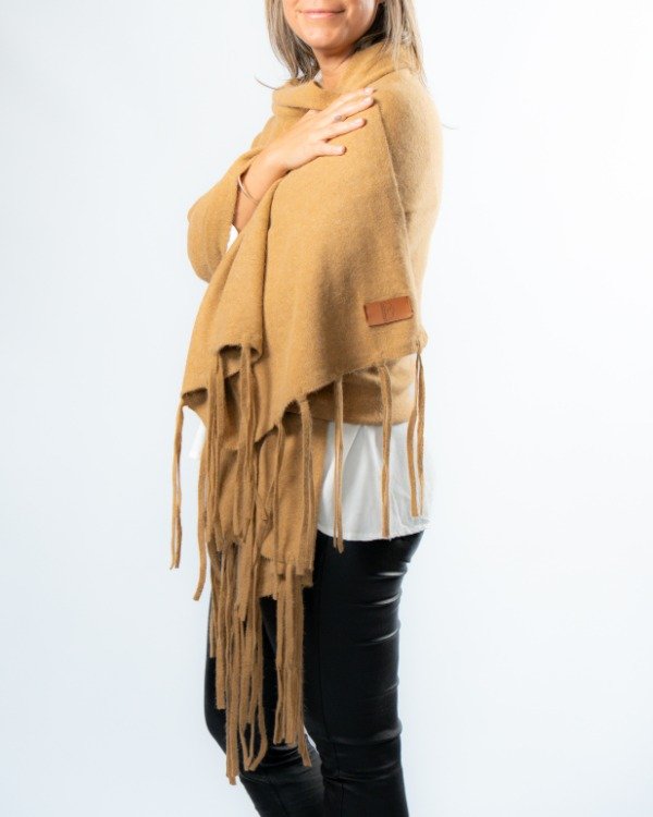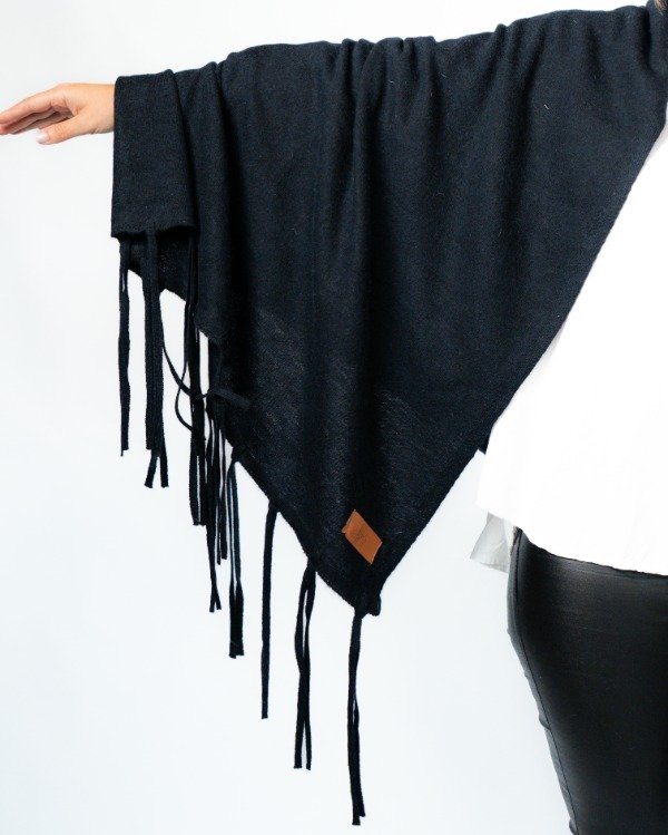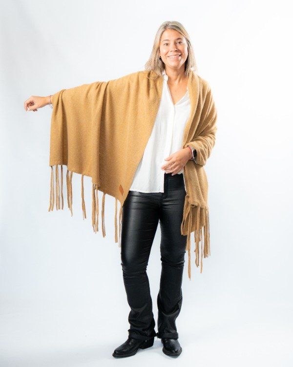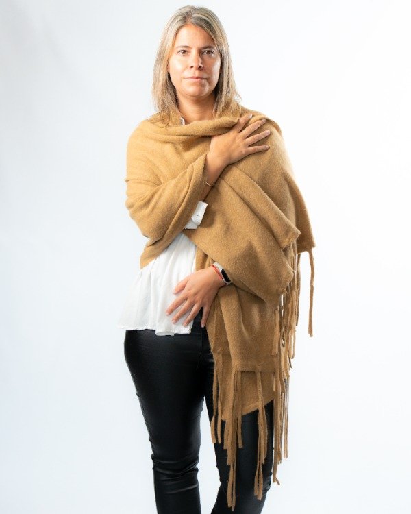 Una prenda versátil que transforma cualquier look. Podés usarlo sobre los hombros o como bufandón, adaptándose a distintos estilos y momentos del día. Los flecos aportan movimiento y ese detalle distintivo que lo hace único.