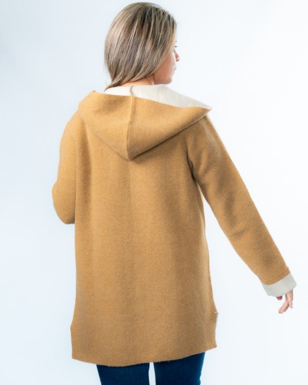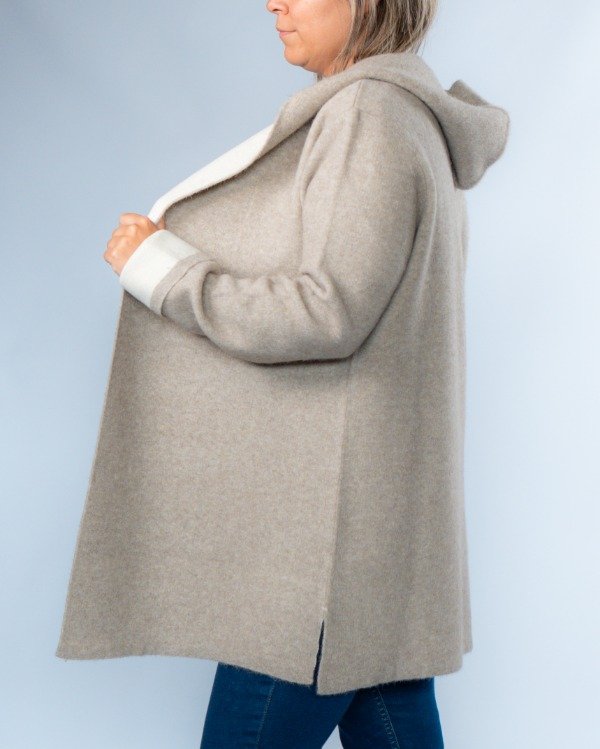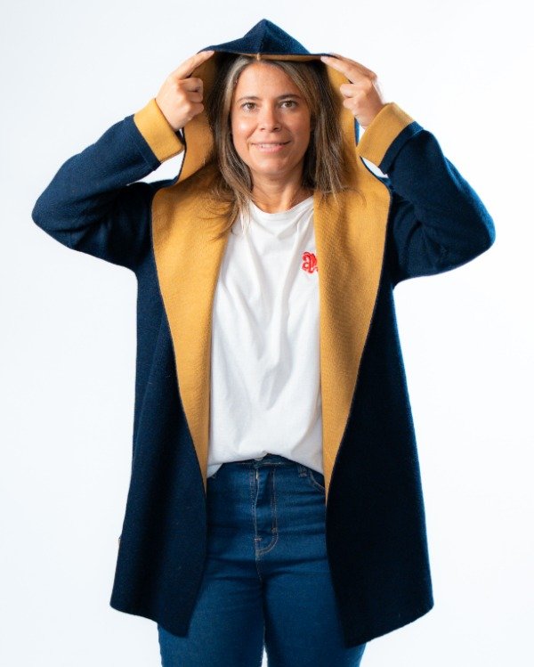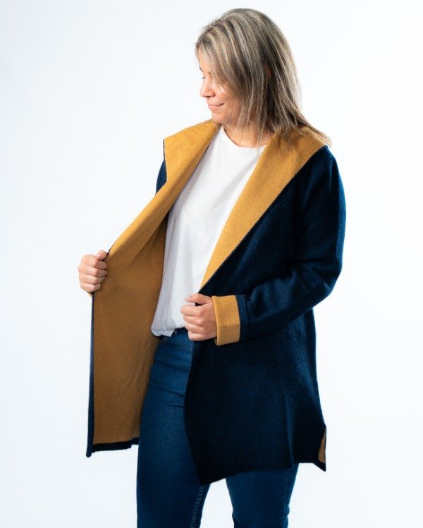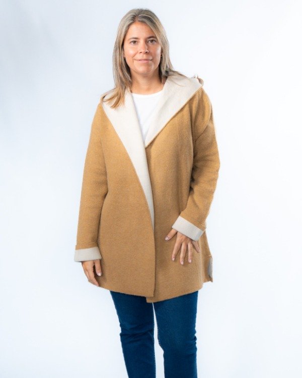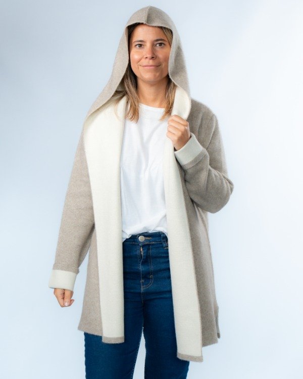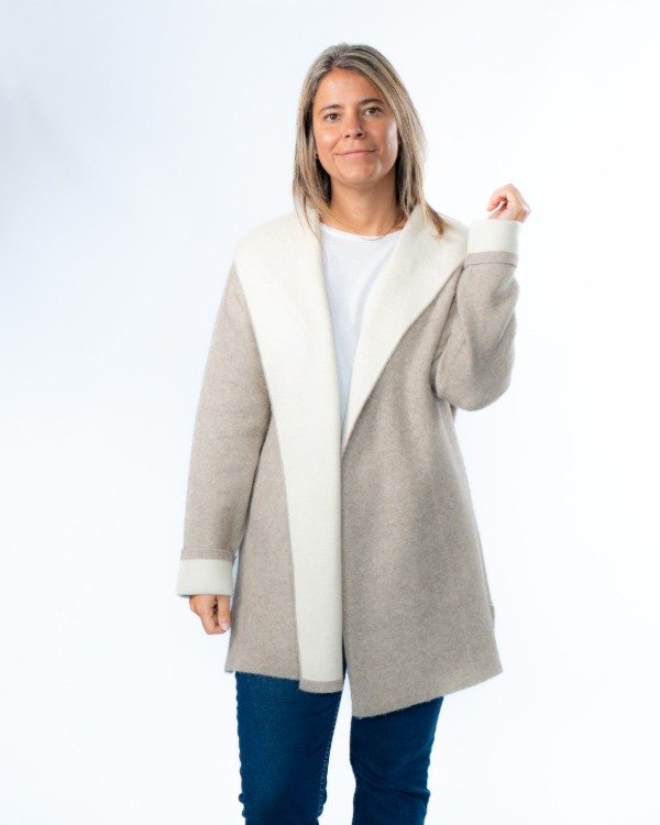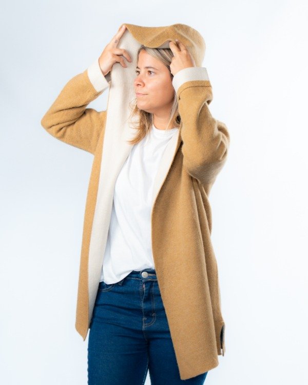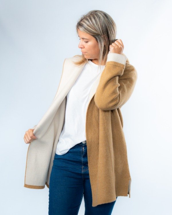 Tejido en lana Merino, una fibra natural que aporta abrigo sin perder liviandad.