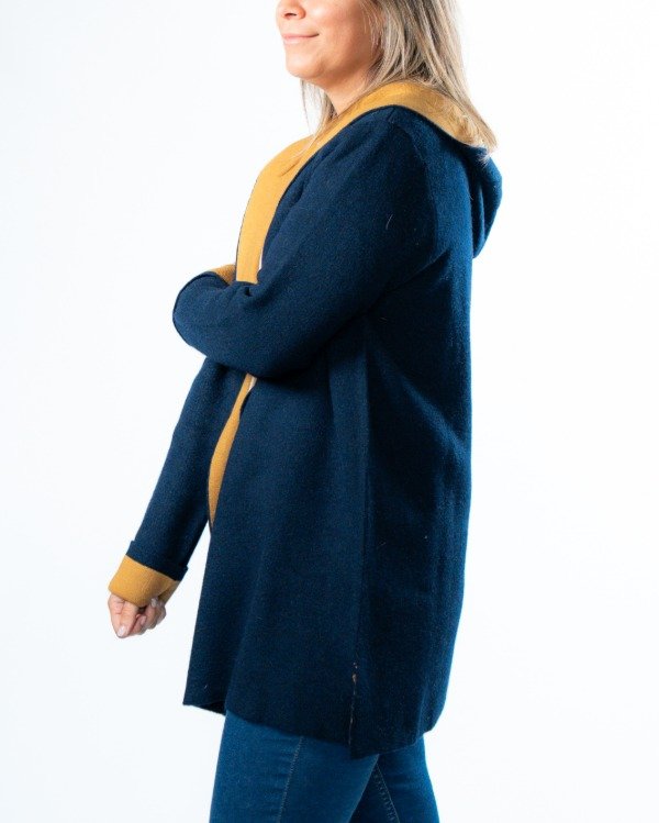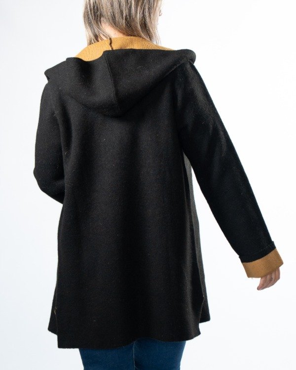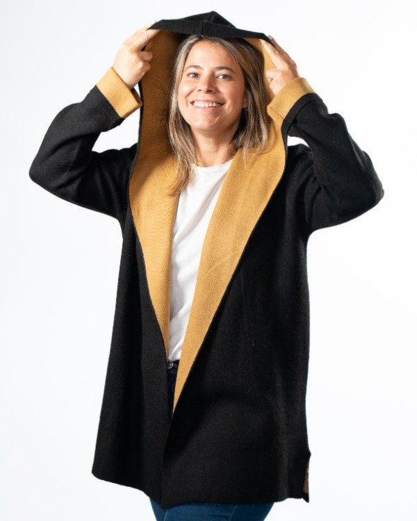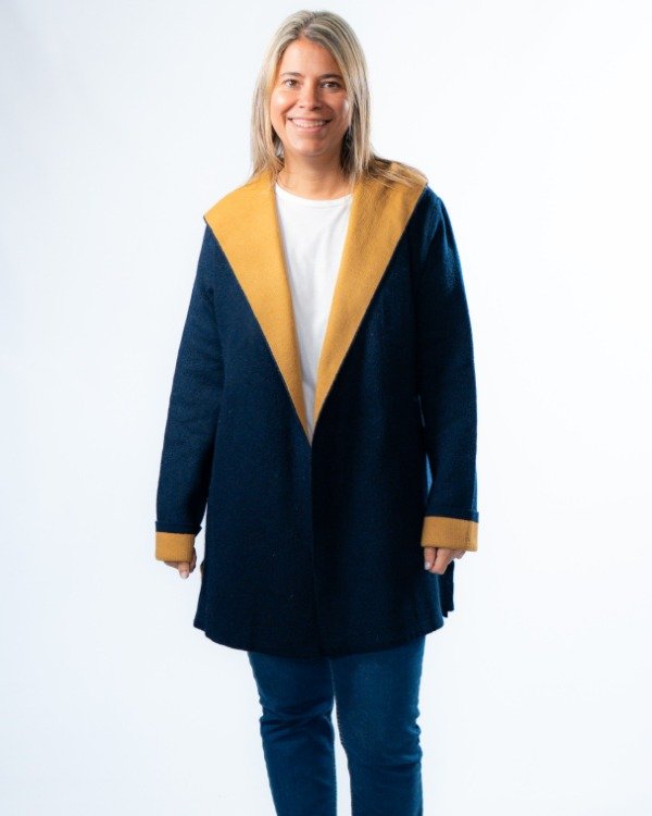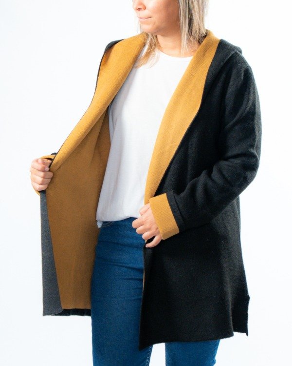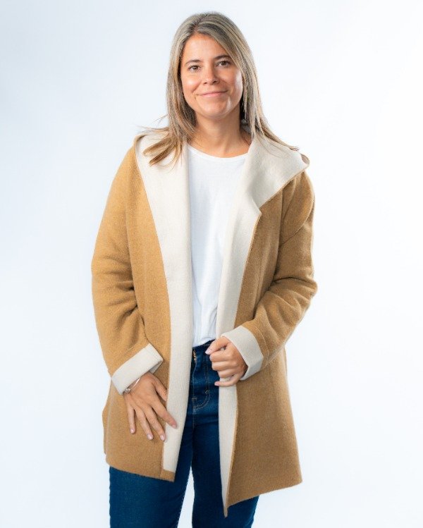 Tiene una silueta cómoda, con caída limpia que acompaña el cuerpo sin marcarlo. Al no tener botones, se usa abierto, logrando un look descontracturado y fácil de combinar.
